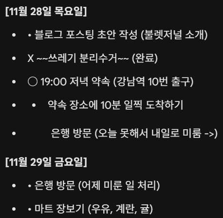 • (점): 할 일 (Task) - 오늘 해야 할 업무나 과제